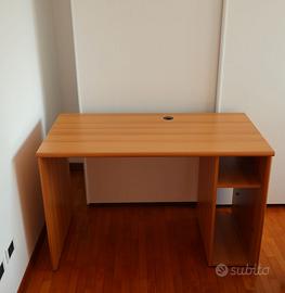 Scrivania Marca Valentini color noce composta da 3 comodi ripiani (1 ripiano è amovibile per posizionare case PC) , bocchetta passacavi