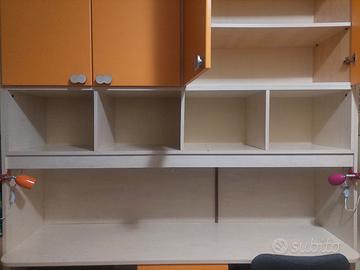 Scrivania con libreria e pensili – completa di cassetti e vani portaoggetti