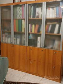 causa trasferimento vendo come nuovo scrivania marca Frezza (allego estratto del catalogo con relative misure) completa dei seguenti accessori: sottomano e porta documenti. vendo altresì allungo dattilo , oltre libreria (doppio modulo - 4 ante) contenente classificatore come da foto. Elegante e di elevata qualità : cristallo 2 cm. e legno nella tonalità noce chiaro. Prezzo affare (non trattabile) € 4.000,00 escluso smontaggio e trasporto che sono a carico dell'acquirente. Compresa nel prezzo pure la sedia in pelle.