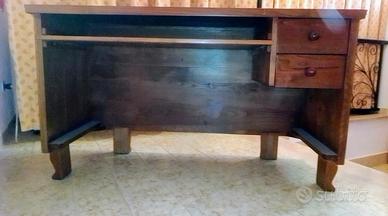 scrivania con mensola estraibile porta tastiera PC artigianale sarda in castagno massello. Come nuova. Unica. 147 x 60 x h83 cm.