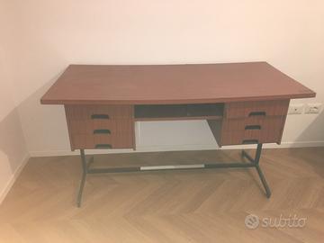 Scrivania stile svedese, anni 70. E’ leggermente imbarcata al centro come da foto, perchè per tanti anni ha sopportato il televisore al posto dei libri. Misure L148 P64 H74. Ritiro Villa Gordiani Teano con ascensore