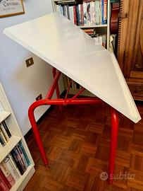 Vendo Tavolo da Disegno / Scrivania in legno laccato bianco, con telaio in metallo rosso.