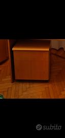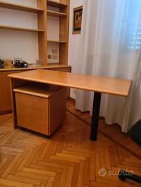 scrivania in legno chiusa da una parte dimensioni: 135 x60 cm altezza 73 cm possibile aggiunta di cassettiera con ruote e 2 cassetti vendibili separatamente