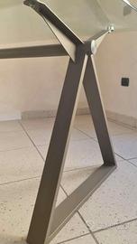 Struttura: Base a cavalletto in metallo con finitura satinata/grigio opaco, molto stabile e robusta.