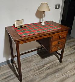 Vendo scrivania in legno vintage. Strutturalmente solida, Ideale come scrivania, tavolo da lavoro o mobile d’appoggio per studio, ingresso o camera. Dotata di 3 cassetti capienti. Il piano è ampio e robusto, presenta normali segni del tempo (visibili in foto) che ne valorizzano il carattere e l’autenticità. Misure in foto. Ritiro a mano Per maggiori info scrivetemi