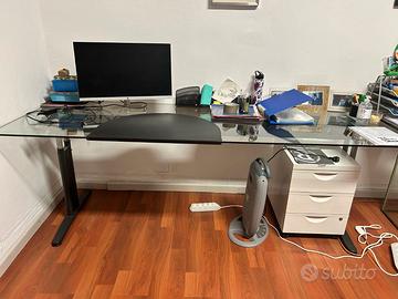 Scrivania/Tavolo in Vetro con Gambe regolabili