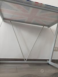 Scrivania o tavolino con base in vetro temperqto con immagine americata. Struttura e piedi in ferro battuto, circa 100X60 altezza circa 80