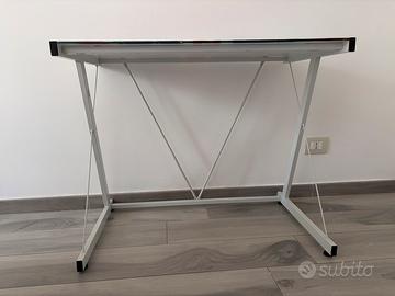 scrivania tavolo in vetro e fetto battuto