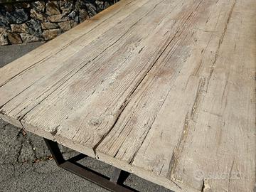 Vendo 2 tavoli/scrivanie realizzate a mano tenute nel mio studio in legno con tavole di ponte con trattamento naturale con base in ferro in stile industriale MISURE 2 metri x 1,50 e un ' altra 1,60x1,20 (tipo consolle)si adattano bene in qualsiasi ambiente Studio/Soggiorno/Giardino