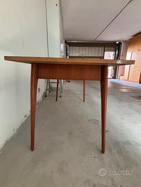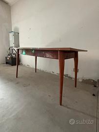 Vendo scrivania/tavolo in stile vintage con struttura in legno e cassetto frontale. Design semplice con gambe affusolate. Presenta segni del tempo e dell’utilizzo, come visibile in foto. Struttura comunque stabile. Dimensioni: 80x160