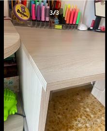 Causa trasloco, vendo scrivania due postazioni, ideale per cameretta oppure ufficio. Tenuta molto bene come nuova, colore rovere grigio adatta a qualunque tipologia di arredamento. Le misure sono le seguenti lunghezza 2 m. Altezza 76 cm. Profondità 60 cm.