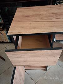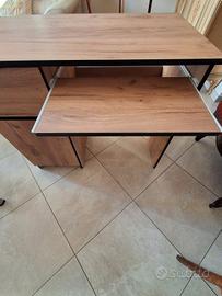 Scrivania tinta noce. In perfette condizioni. Misure. larghezza 90 cm. profondità 50 cm. altezza 77 cm. Ha un cassetto e un'anta.