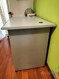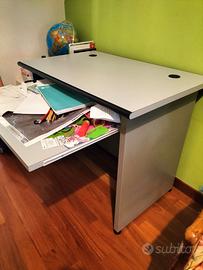 Vendo scrivania con ripiano estraibile, molto robusta, ottimo stato, "gambe e retro in lamiera, i due ripiani in legno.Colore grigio.Misure come da foto: 90x60 altezza 75 cm. Il ripiano superiore ha 2 fori per il passaggio di eventuali cavi. Ritiro a mano in Torino.La scrivania è smontata.