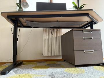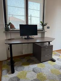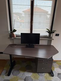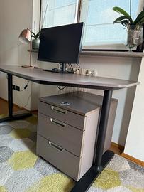 Scrivania grigia GALANT con piedi in metallo nero in perfette condizioni. Dimensioni della scrivania: Larghezza 160 cm Profondità del piano di lavoro piu ampia 80 cm Profondita del piano di lavoro meno amoio 50 cm Altezza 74 cm ESCLUSA CASSETTIERA