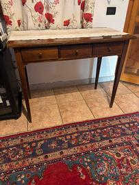 Vendo scrivania tre cassetti in legno color noce, misure 103cm per 56cm