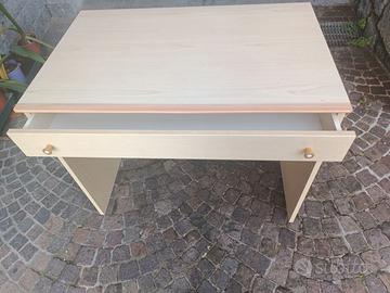 Vendo scrivania colore legno chiaro con unico cassetto. Disponibile anche una con due cassetti piccoli. Prezzo 10 euro cadauno, non spedisco solo consegna a mano. Larghezza 90 cm Profondità 58,50 cm Altezza 72,50 cm