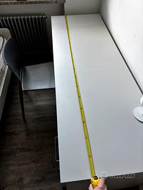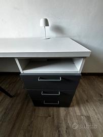 PREZZO TRATTABILE. scrivania con allegate misure, ottime condizioni. colori grigio e bianco. in piu sedia grigia, stesso colore dei cassetti della scrivania.