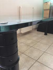 Vendo scrivania triangolare superficie vetro e gambe in metallo come da foto. La scrivania è già smontata e pronta per essere trasportata. Vetro spessore 1,9 cm come da foto. Dimensioni: 150 x 150 x 210 cm. PREZZO TRATTABILE