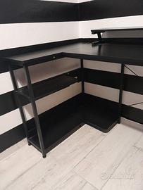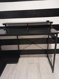 Causa necessità di liberare alcuni spazi di casa, cedo scrivania di colore nero acquistata ad agosto 2025 e praticamente nuova, dotata di mensola sollevata per appoggio monitor e due mensole sottostanti per computer e stampante o per vs uso soggettivo. Misure: lunghezza 120 cm, larghezza 80 cm la parte più lunga e 50 la più corta, altezza 88 cm la parte con rialzo e 76 cm quella di appoggio. Ritiro in zona Svevo-Baiamonti.