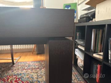 Scrivani 185cm X 85cm, h 75cm. Presenta difetti riportati in foto. Splendida con anche passacavi per pc. Scrivania in legno wenge. Non spedisco. 250 trattabili