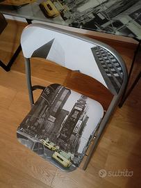 Vendesi scrivania con piano in vetro e struttura in metallo cm 115 x 60, alt cm 74,5 completa di sedia coordinata. Solo ritiro Udine.