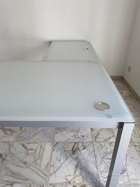 Scrivania ufficio angolare in cristallo base in alluminio e contenitori per fili con cappuccio. Misure 2 metri x 90cm - angolo 1 metro x 60cm Condizioni ottime