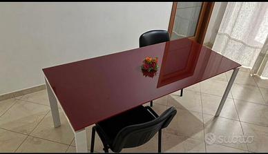 Scrivania ufficio in vetro rosso temprato, non trasparente. dim. 70x80x180 cm con struttura e gambe in metallo bianco. Ottime condizioni, versatile ed adeguato per chi ama un design minimale ed elegante. Nessun raschio né ammaccatura, praticamente nuovo