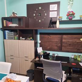 Vendo postazione ufficio completa composta da scrivania, mobile con cassetti, libreria/vetrina e pensili contenitori come da foto.