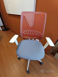 Vendesi scrivania doppia postazione ATREO WOOD GAMBA METALLO BIANCO E ROVERE MASSELLO PIANO MELAMINICO NOI SETTE DIM.160X163X74H (600€) SEDUTA OPERATIVA BASE RAZZE NYLON BIANCO SYNCRO REG. LOMBARE TESSUTO GRIGIO RA32 RETE MATTONE N11 E BRACCIOLI REGOLABILI (199€)