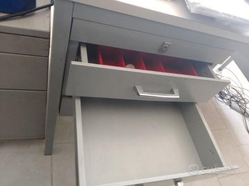 Scrivania con struttura in metallo e due cassettiere ai lati . Misura Larghezza 160cm x 75 cm di profondità ed altezza cm 75,50. Ritiro in sede