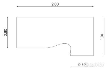 Scrivania sagomata Mascagni cm.200x100 con struttura metallica a T colore antracite, piano in nobilitato grigio, disponibile DX e SX ed eventualmente allungo.