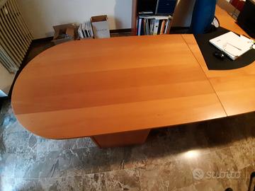 Scrivania ufficio IKEA, in legno massiccio, non in truciolare. spessore piano 2cm.Dimensioni complete 250x200cm,scomponibile in 3 elementi. Vendo per trasferimento ufficio.