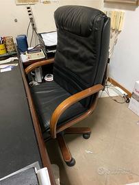 Per ufficio dirigente o studi commerciali in vendita Scrivania presidenziale angolare in legno massello con poltrona in pelle/legno e sedie in pelle /legno. in ottime condizioni. Solo ritiro, no spedizioni