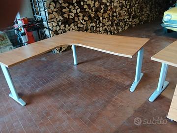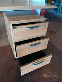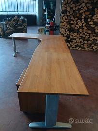 Scrivania ad angolo divisibile con cassettiera con rotelle misure 3mt×80 la parte separabile misura 120×80 in buono stato. Ritiro in loco no spedizione