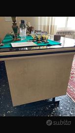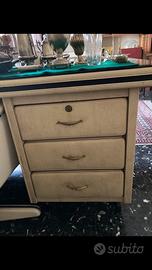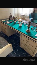 Scrivania anni 50 Umberto Mascagni Rivestimento finta pelle piano in vetro Misure 180 X78 alt78 Buono stato . Prezzo 800 La scrivania ha anche una sedia compresa nel prezzo. La spedizione la puo gestire L’acquirente o ritiro sul posto