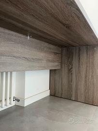 volevo liberare un po’ di spazio in camera vendendo questa scrivania. Usata ma in buone condizioni, solo un difetto è che un lato tende a sbilanciarsi ma nulla che non possa essere risolto con una vite.