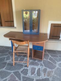 Scrivania con vetrinetta con particolari blu presenta qualche piccolo graffio dove ci si appoggia il resto é perfetta