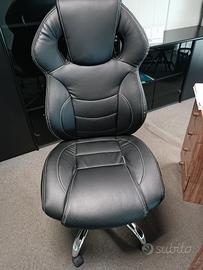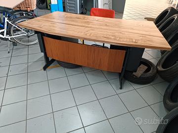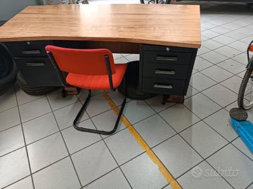 scrivania con tre cassetti dx e due cassetti sx con piano in legno sagomato misure 2,00 lungh x 0,95 largh con poltrona nera in ecopelle