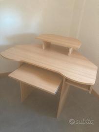 Scrivania angolare cm.114 largh x 70 profondità, 76 h lato corto (angolo) cm.40 rialzo x monitor amovibile cm.60 largh x 32 prof., 16 h