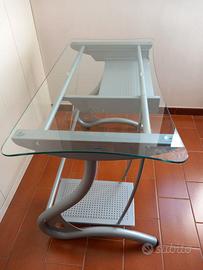 Vendo scrivania in vetro e metallo come da foto. Inclusi porta pc e tastiera, eventualmente rimovibili. Ritiro a Taranto