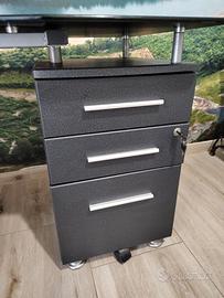 Scrivania colore grigio ardesia, con top vetro temperato, tre cassetti, misure: lunghezza 120 cm x profondità 60 cm x altezza 76 cm