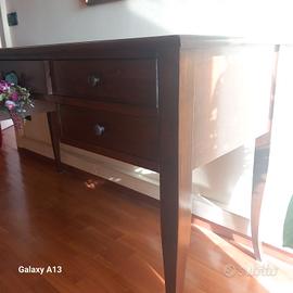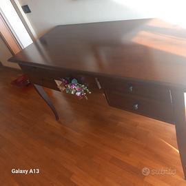 scrivania 5 cassetti noce chiaro appena restaurata vernice lucisa legno massiccio 40x120 h 75 solo ritiro da me quindi vicenza e provincia