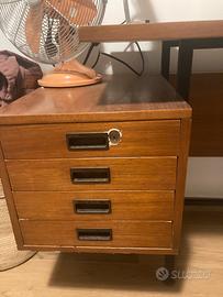 Vendo scrivania vintage in legno con struttura in metallo e cassettiera sospesa a 4 cassetti. Design elegante in stile modernariato anni ’60/’70, ideale per studio, ufficio o arredamento retrò. La scrivania è solida e stabile, con ampio piano di lavoro e cassetti capienti. Ottima anche come pezzo d’arredo per chi ama lo stile vintage. Condizioni: Buone condizioni generali, con normali segni del tempo visibili ma perfettamente utilizzabile. Dimensioni Larghezza: ___ 100cm Profondità: ___ 50cm Altezza: ___ 70cm Ritiro: Ritiro a mano presso ___ Disponibile per visione.