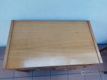 Scrivania vintage in legno. Misure: Larghezza 80 cm, altezza 80 cm, profondità 45 cm.