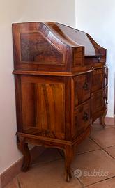 Vecchia antica ribaltina secretaire legno epoca stile barocco vintage L 85; H 85; P 36. Ritiro a carico dell’acquirente, piano terra.