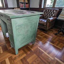 Bella e solida scrivania stile cattedra scolastica con 6 cassetti e 2 ante.