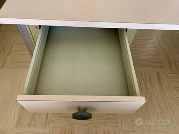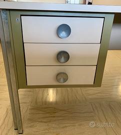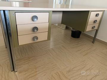 Scrivania in metallo e laminato anni '70 molto robusta e in perfette condizioni provvista di 6 cassetti. Dimensioni: Larghezza 1,80 Profondità 0,80 Altezza 0,76