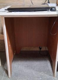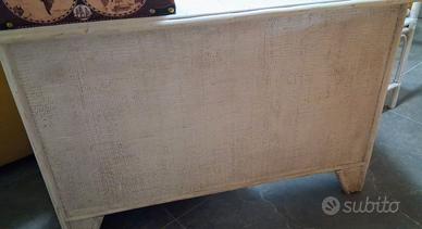 Struttura robusta e in ottime condizioni, qualche difetto.dietro della scrivania completamente in rattan e rivestito in legno.robusta e in buone condizioni.molto bella e ridipinta in bianco shabby vintage.