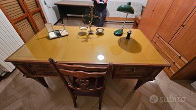 Vendesi scrivania vintage in legno con piano in vetro in perfette condizioni estetiche e funzionali.
