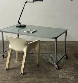Scrivania anni '80 con piano in cristallo. Interamente smontabile. Moment Desk di Niels Gammelrgaard per Ikea. Misure: 140 x 90 x 80 (altezza).
